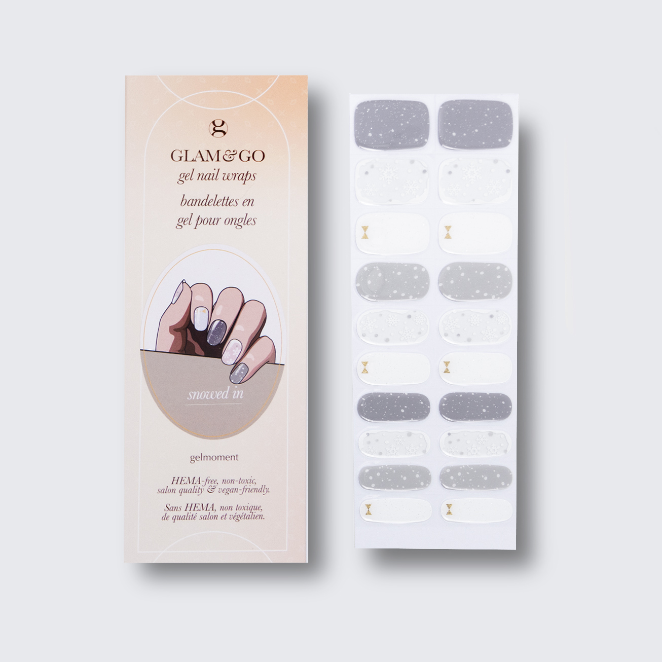 Plus, not only do GLAM & GO gel nail wraps provide the same glossy finish you know and love from our regular gel polish, but they are also HEMA FREE and have a wear time of up to 14+ days.